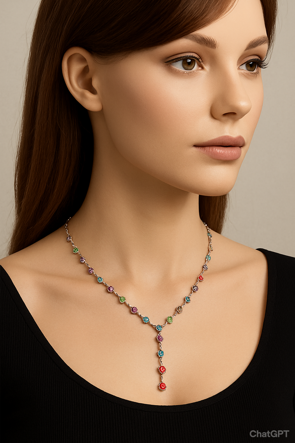 Paslanmaz çelik renkli zirkon taşlı y kolye 60 cm